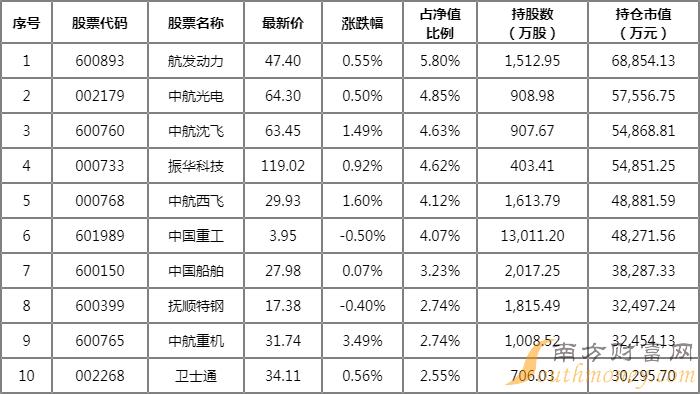 重仓中航西飞的前十大基金详情