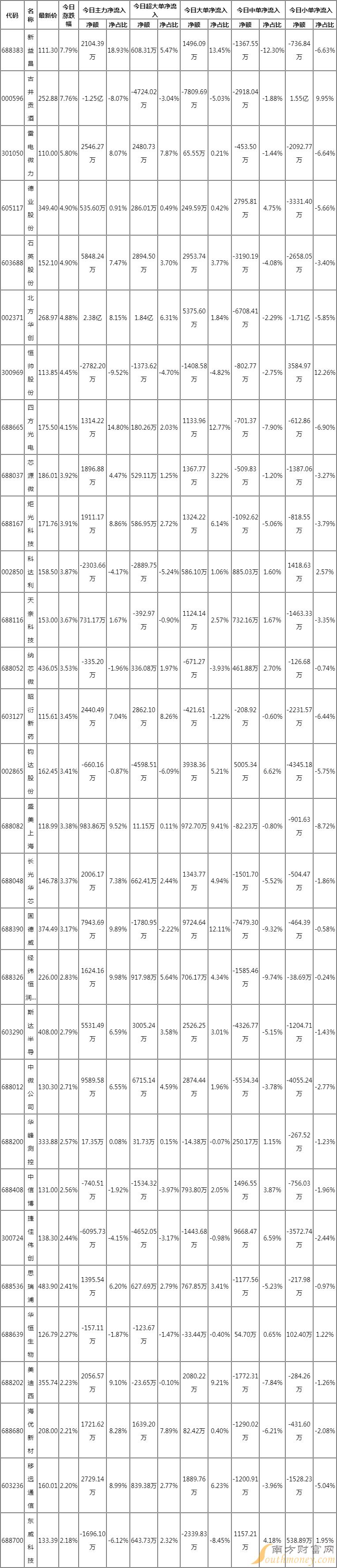 今日主力净流入:-29.4684亿主力净比:-4.16%