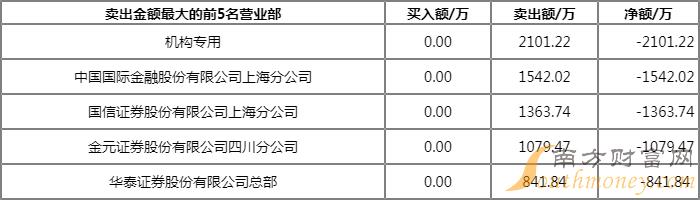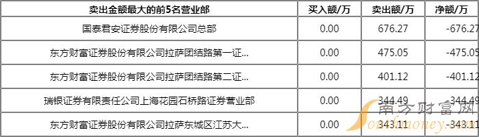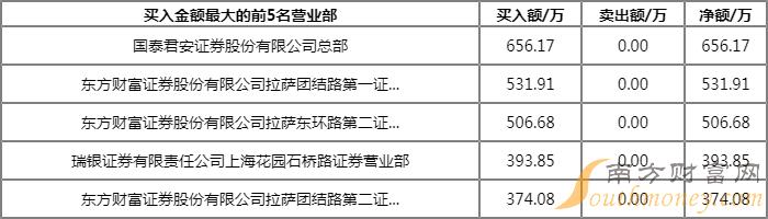 上榜的前五大买卖营业部合计成交1.11亿元,其中,买入成交额为4170.57万元,卖出成交额为6928.29万元,合计净卖出2757.72万元。