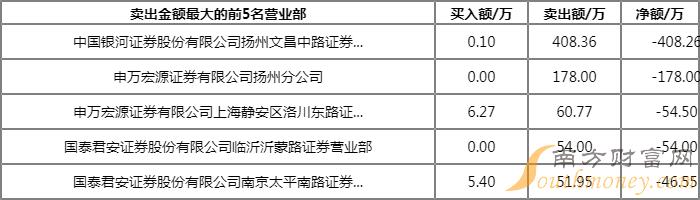 上榜的前五大买卖营业部合计成交1155.15万元,其中,买入成交额为402.07万元,卖出成交额为753.08万元,合计净卖出351.02万元。
