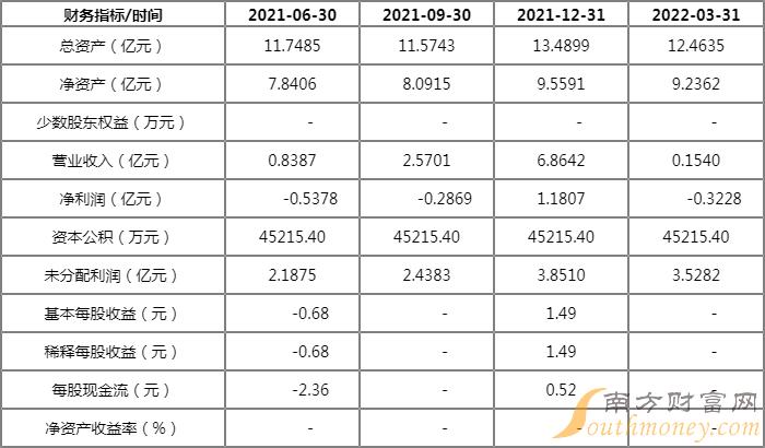 2022年第一季度显示,公司实现净利润2437.75万元, 同比增长-29.88%;全面摊薄净资产收益 4.5%,毛利率11.77%,每股收益0.1元。