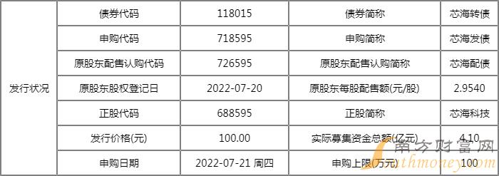 松霖转债(7月20日),世界领先的厨房和浴室配件供应商,人民币贬值和智能家居概念,规模6.1亿元,AA,转债税后本息为115.68元,类黄金级,转股价值96.98元,预计每签能赚200元。转债股权登记日为7月19日,每股配售1.521元,最低658股可以确保配售一签。