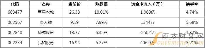 相关个股涨幅一览