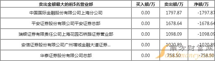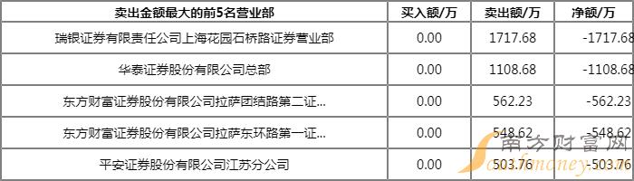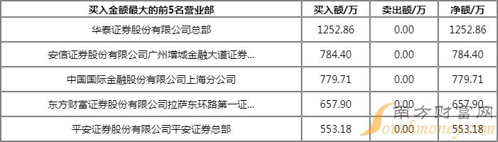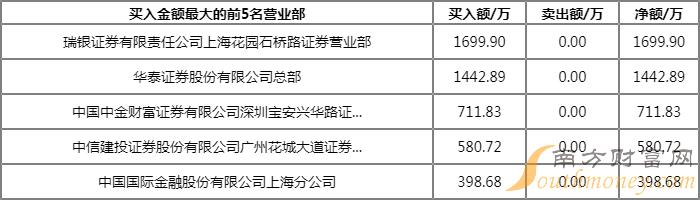第一大买入营业部及卖出营业部均为瑞银证券有限责任公司上海花园石桥路证券营业部,买入金额为1699.90万元,卖出金额为1717.68万元。