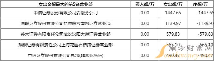 成交额:7687.02万元 合计买入:3464.00万元 合计卖出:4223.02万元 净额:-759.02万