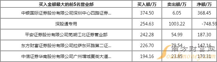 今日上榜的营业部中,深股通为第二大买入营业部及第二大卖出营业部,买入金额为254.63万元,卖出金额为1003.22万元,合计净卖出748.59万元。