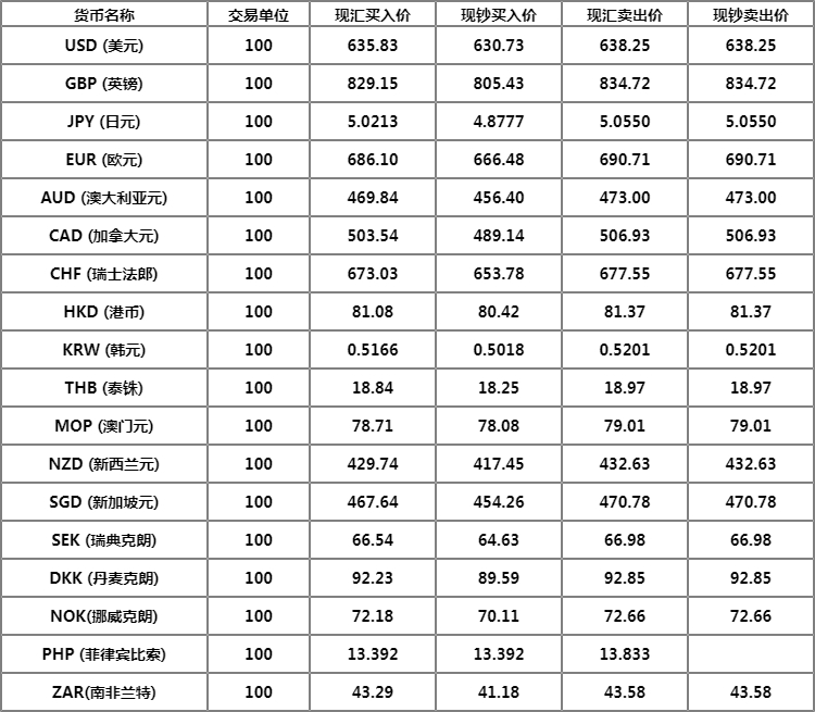1.本牌价仅供参考,以银行各分行实际交易汇率为准。