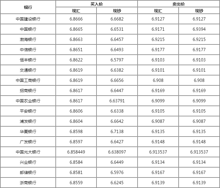 注:市场行情变化较快,以上汇率行情数据仅供参考,请以当时最新行情为准。
