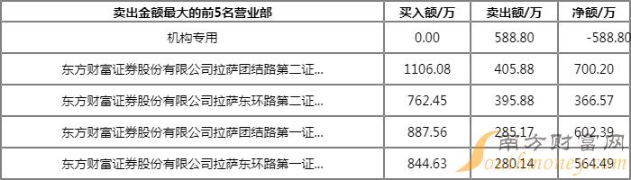 今日上榜的营业部中,共有1家机构专用席位现身,即卖一,合计净卖出588.80万元。