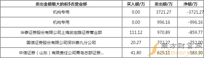 4月6日上榜原因:日振幅值达到15%的前5只证券。中科金财股票上榜的前五大买卖营业部合计成交6.11亿元,占该股当天成交总金额的比例为18.23%,其中,买入成交额为2.42亿元,占该股当天买入成交额的比例为7.22%,卖出成交额为3.69亿元,占该股当天买出成交额的比例为11.01%,合计净卖出1.27亿元,实力游资卖出,成功率30.71%。