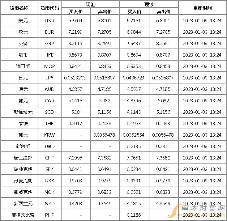 怒眉立目的瀑布 交通银行外汇牌价表 1月9日交通银行人民币对美元汇率多少?下面同道财君来看看。