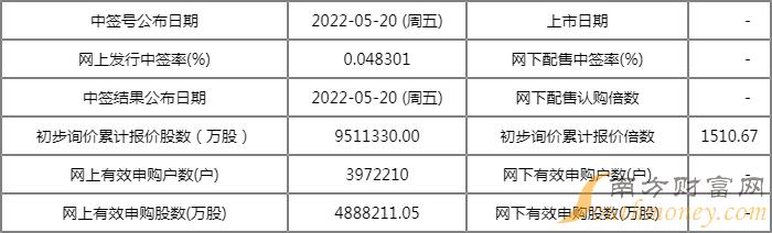 云从科技公布网上申购情况及中签率,本次网上发行有效申购户数为3,972,210户,有效申购股数为48,882,110,500股。回拨机制启动后,网下最终发行数量为5,509.05万股,占扣除最终战略配售数量后发行数量的70.00%;网上最终发行数量为2,361.05万股,占扣除最终战略配售数量后发行数量的30.00%。回拨机制启动后,网上发行最终中签率为0.04830090%。