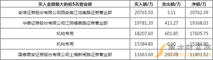 卖三为中国国际金融上海分公司,该席位买入4187.42万元,卖出4084.23万元,净买额为103.19万元。近三个月内该席位共上榜913次,实力排名第8。