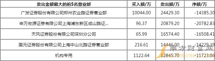 卖四为东方财富证券拉萨东环路第一证券营业部,该席位买入1173.92万元,卖出3507.04万元,净买额为-2333.12万元。近三个月内该席位共上榜1423次,实力排名第3。