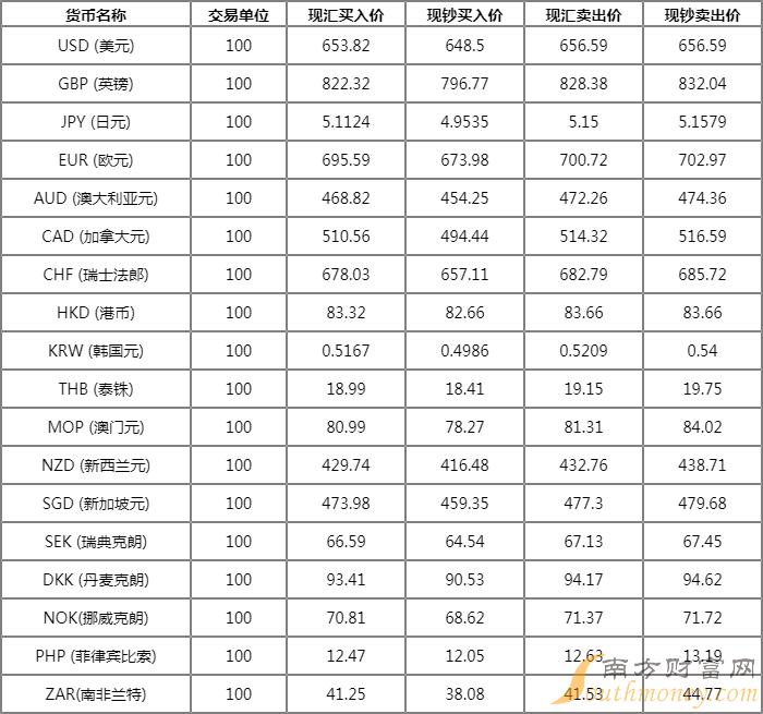 闻钱包 中国银行外汇牌价表 中国银行人民币汇率是多少?下面同小释来看看。