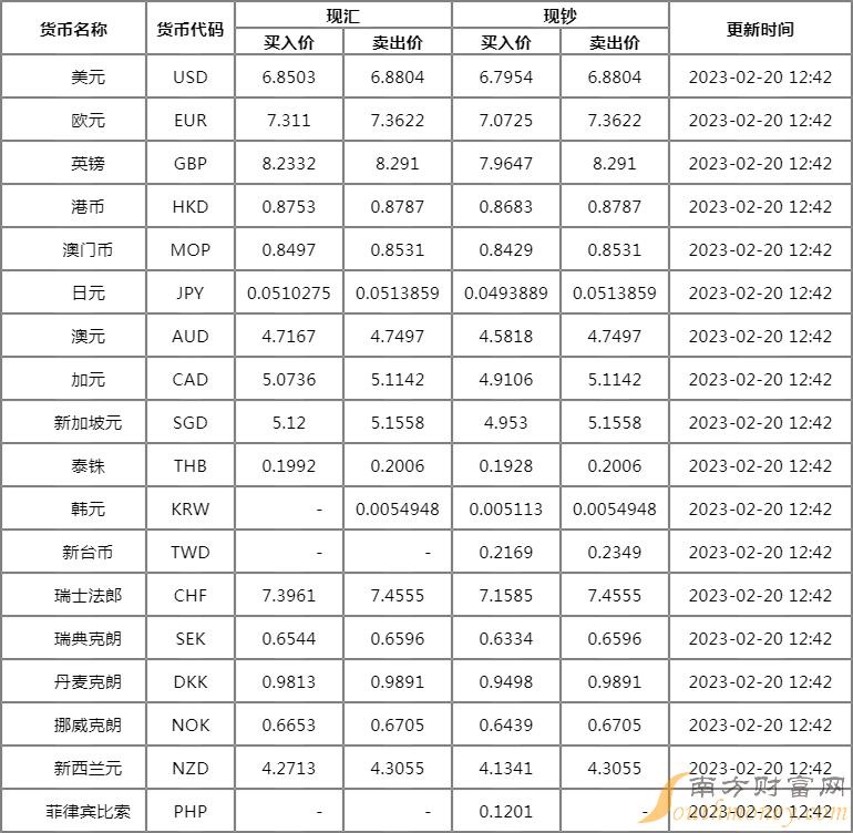 闻钱包 2023年2月20日交通银行外汇牌价表 交通银行人民币美元汇率多少?人民币汇率中间价一览,下面同鲸多君整理来看看。