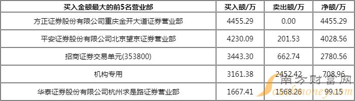 成交额:2.98亿元 合计买入:1.95亿元 合计卖出:1.03亿元 净额:9191.09万元