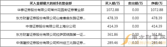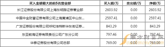 成交额:4619.13万元 合计买入:2616.98万元 合计卖出:2002.15万元 净额:614.83万元
