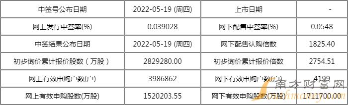 网上发行申购日:2022年05月17日,缴款日:2022年05月19日