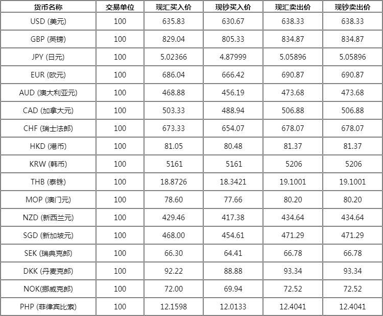 柯保 浦发银行外汇牌价表 4月16日浦发银行人民币汇率多少?下面同路路来看看