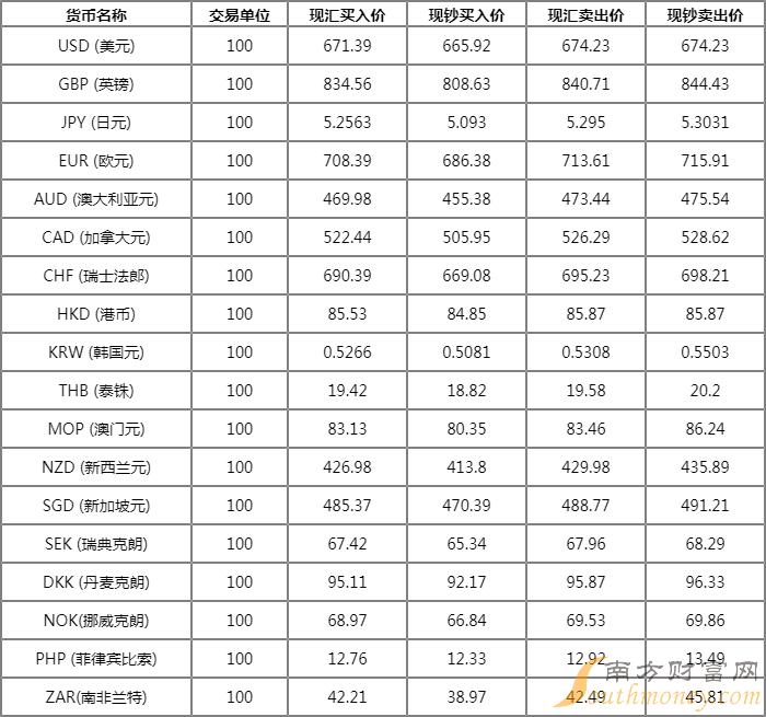 中国银行外汇牌价表520 中国人民币外币汇率多少?下面同怪咖君来看看。 2022年5月20日银行间外汇市场人民币汇率中间价为:1美元对人民币6.7487元,1欧元对人民币7.1379元,100日元对人民币5.2785元,1港元对人民币0.86004元,1英镑对人民币8.4125元,1澳大利亚元对人民币4.7531元,1新西兰元对人民币4.3070元,1新加坡元对人民币4.8874元,1瑞士法郎对人民币6.9428元,1加拿大元对人民币5.2644元,人民币1元对0.65257马来西亚林吉特,人民币1元对9.2311俄罗斯卢布,人民币1元对2.3471南非兰特,人民币1元对188.02韩元,人民币1元对0.54429阿联酋迪拉姆,人民币1元对0.55586沙特里亚尔,人民币1元对53.8704匈牙利福林,人民币1元对0.65104波兰兹罗提,人民币1元对1.0423丹麦克朗,人民币1元对1.4702瑞典克朗,人民币1元对1.4361挪威克朗,人民币1元对2.35895土耳其里拉,人民币1元对2.9534墨西哥比索,人民币1元对5.1109泰铢。