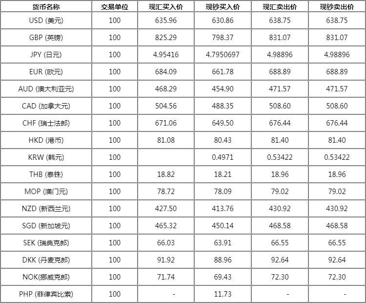 注:市场行情变化较快,以上汇率行情数据仅供参考,请以当时最新行情为准。