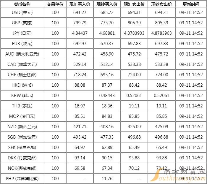 泪眼模糊的牛排 中国交通银行外汇牌价表 9月11日交行人民币对美元汇率多少?下面同吾浦君来看看。