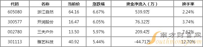 户外露营资金流向明细06.30