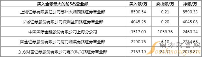上榜的前五大买卖营业部合计成交4.30亿元,其中,买入成交额为2.36亿元,卖出成交额为1.94亿元,合计净买入4198.51万元。