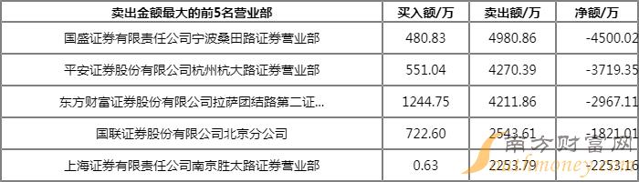 今日上榜营业部中,第一大买入营业部为上海证券有限责任公司苏州太湖西路证券营业部,买入金额为8590.54万元,第一大卖出营业部为国盛证券有限责任公司宁波桑田路证券营业部,卖出金额为4980.86万元。