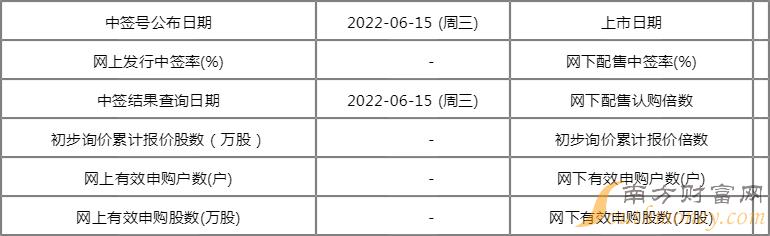 网上发行日期 2022-06-13 (周一) 网下配售日期 2022-06-13