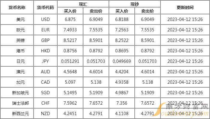 唐沙发 2023中国银行汇率牌价一览表 4月12日今日美元汇率多少?大耳朵整理如下。