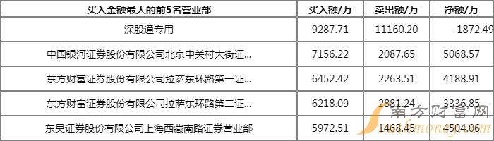 成交额:9.58亿元 合计买入:3.99亿元 合计卖出:5.58亿元 净额:-1.59亿元