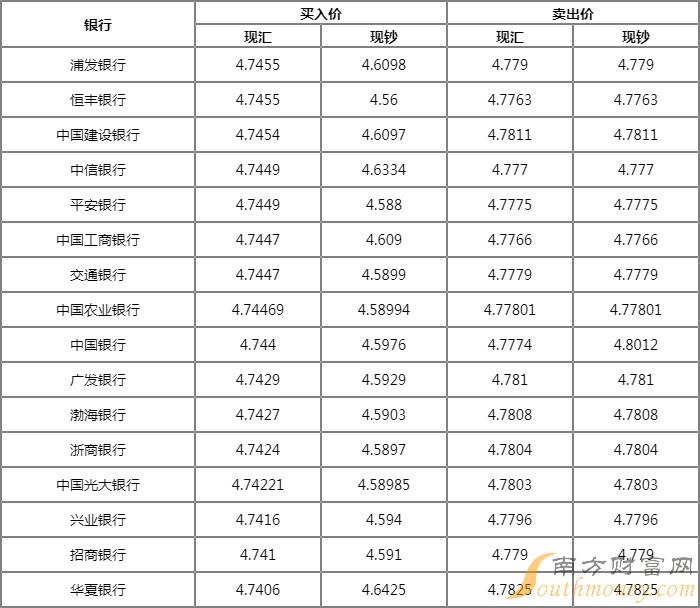 结汇最优:浦发, 恒丰 汇率: 4.74551000新加坡元现汇可结汇为4745.50人民币
