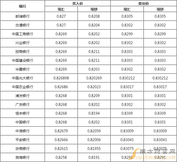结汇最优:邮储, 交行 汇率: 0.8271000港币现汇可结汇为827.00人民币