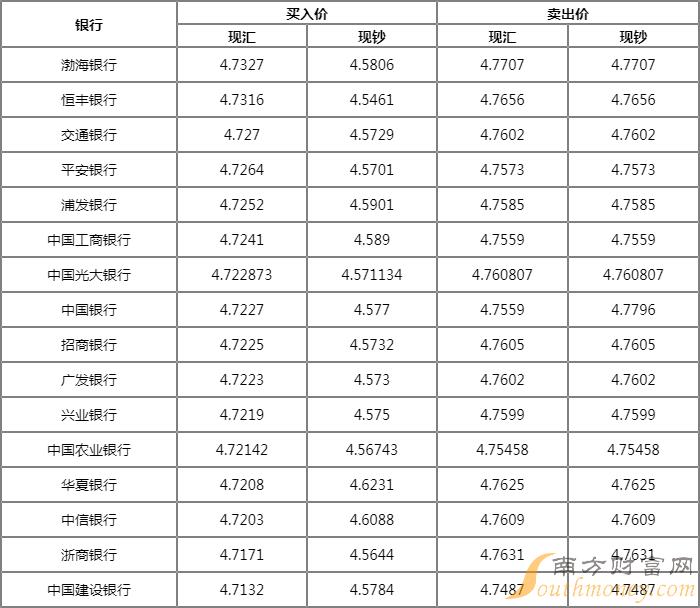 结汇最优:渤海 汇率: 4.73271000新加坡元现汇可结汇为4732.70人民币