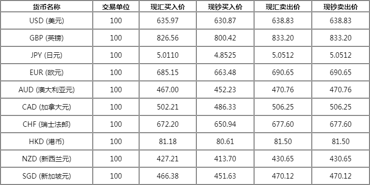 注:市场行情变化较快,以上汇率行情数据仅供参考,请以当时最新行情为准。