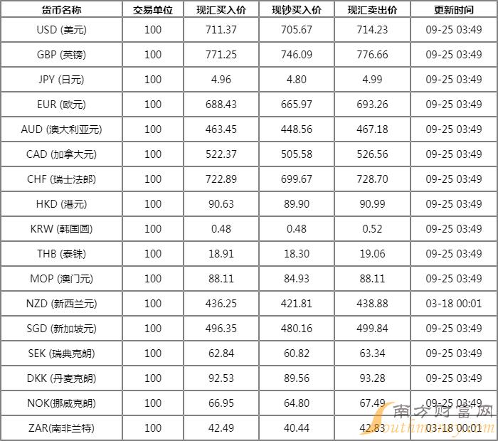 两鬓雪白的石榴 中国农业银行外汇牌价表 9月25日农行人民币汇率多少?下面同老李来看看。