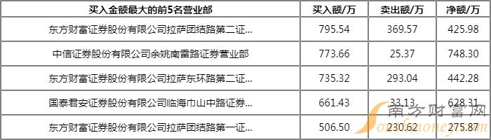 成交额:5525.32万元 合计买入:4108.99万元 合计卖出:1416.33万元 净额:2692.66万元