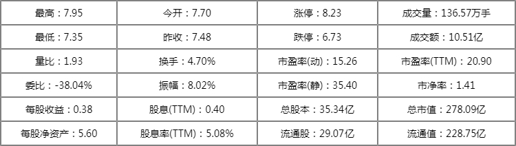 | 振幅:3.15% | 盘后额:-- | 委比:39.13% | 流通值:40.17亿 |