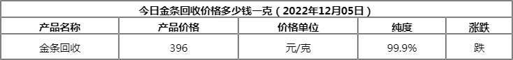 脸色苍白的贵 今日金条回收价格多少钱一克(2022年12月5日)黄金金条回收今天多少钱一克,2022年黄金金条回收价格查询 接下来跟一起来看看相关资讯。