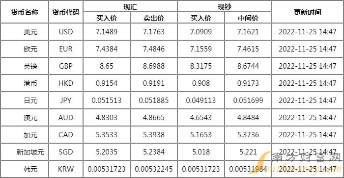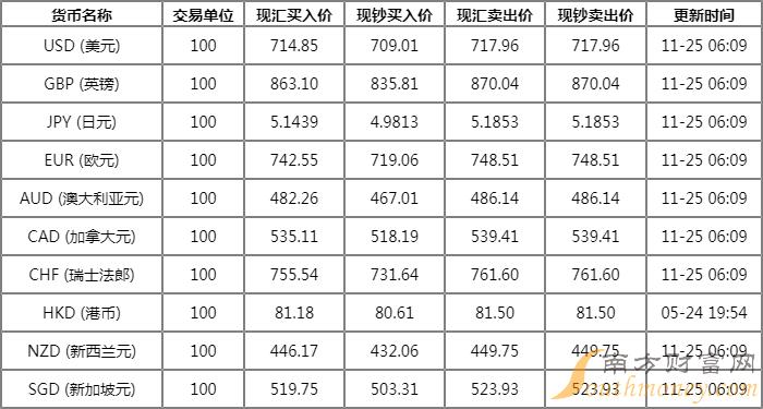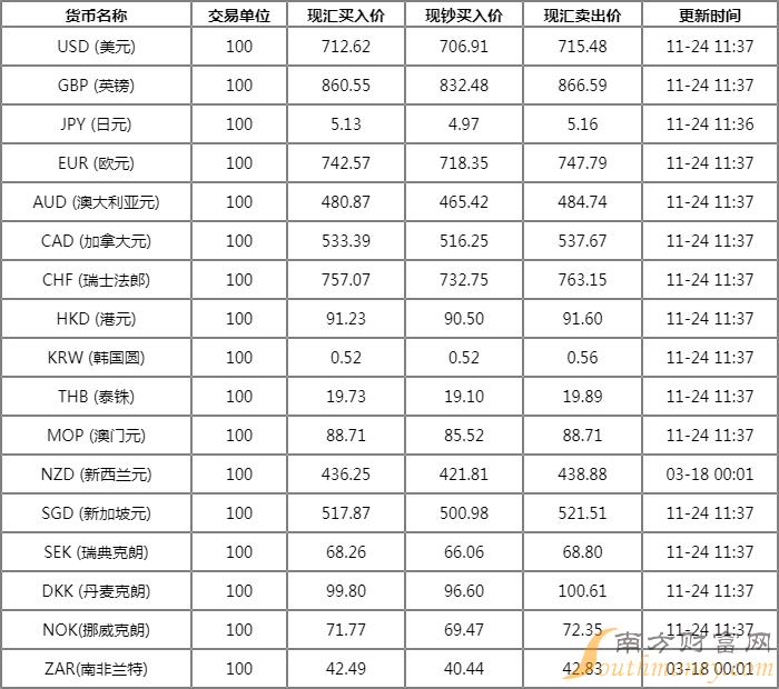 脸色苍白的贵 中国农业银行外汇牌价表 11月24日农行人民币汇率多少?下面同三江君来看看。