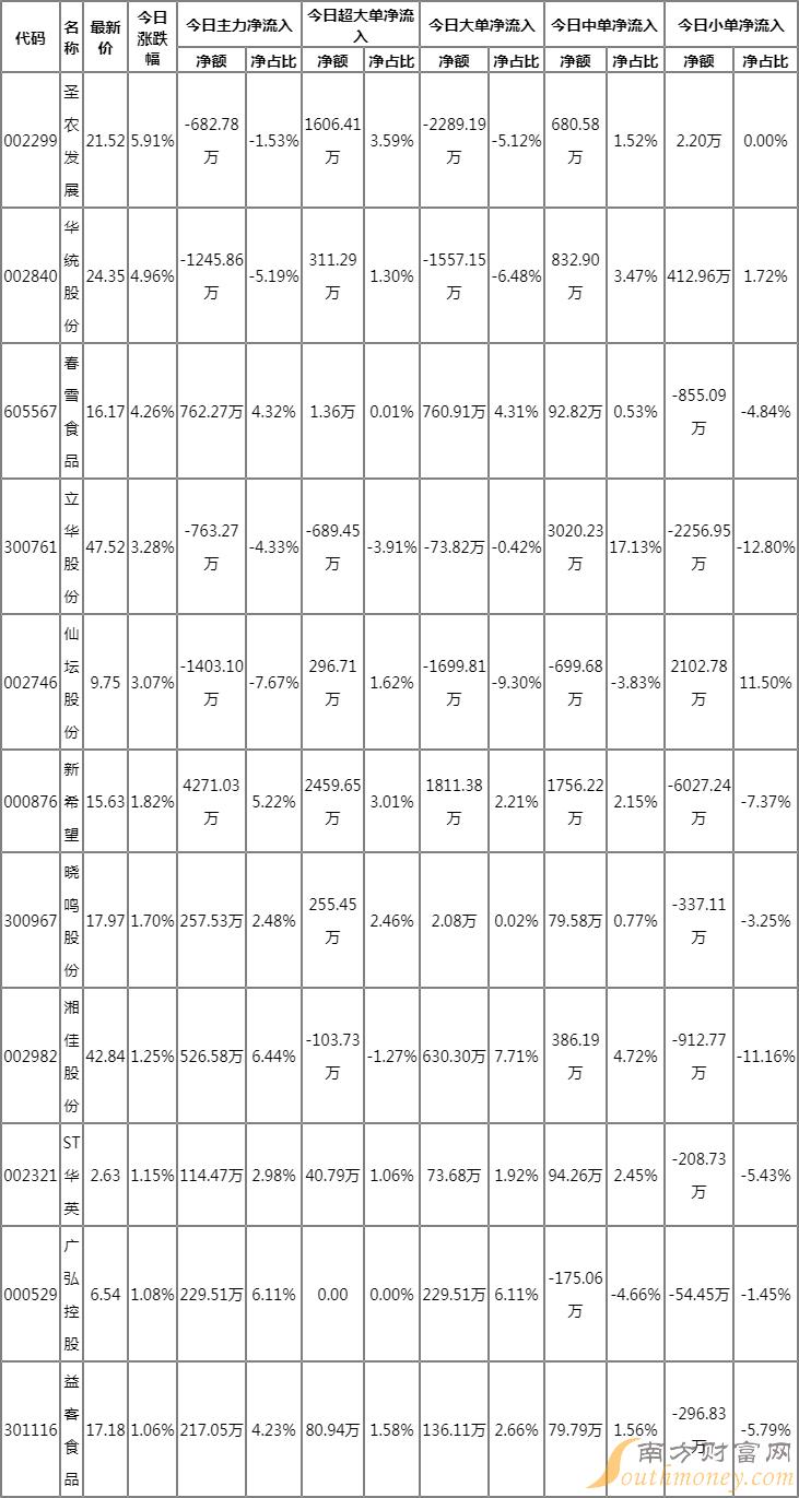 鸡肉概念资金流向明细