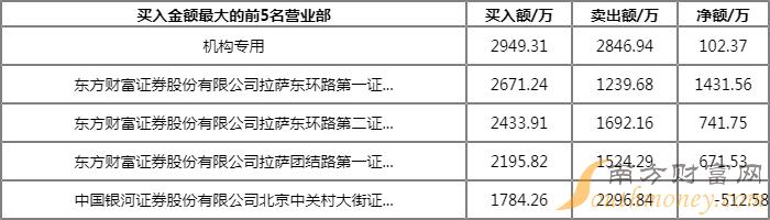 成交额:2.86亿元 合计买入:1.30亿元 合计卖出:1.56亿元 净额:-2536.39万元