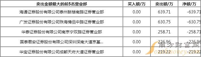 买四、卖二均为东方财富证券拉萨团结路第一证券营业部,该营业部买入575.01万元,卖出773.51万元,净买额为-198.51万元。近三个月内该席位共上榜1201次,实力排名第5。