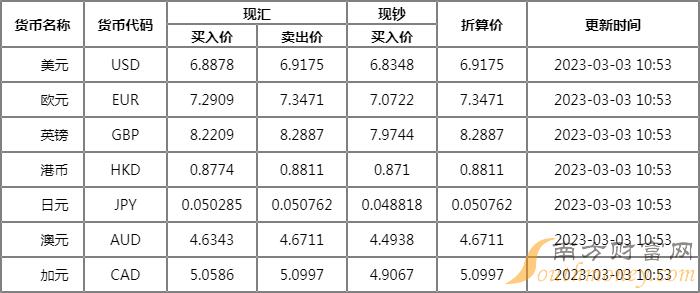 邮储银行外汇牌价实时汇率查询2023.03.03 今日各大货币汇率多少?人民币汇率怎样?下面同看点君来看看。