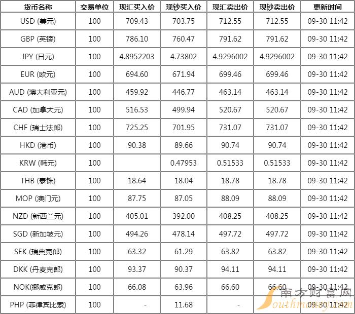 周五交通银行外汇牌价表 9月30日交行人民币汇率多少?下面同老张来看看。