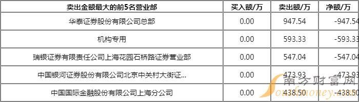 成交额:5709.27万元 合计买入:2708.92万元 合计卖出:3000.34万元 净额:-291.42万元