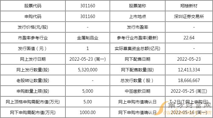 翔楼新材上市是什么时候 301160中签号公布日期,下文就随大师兄来简单的了解一下吧。