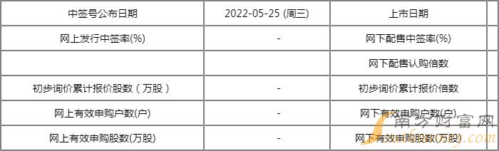 网上发行申购日:2022年05月17日,缴款日:2022年05月19日